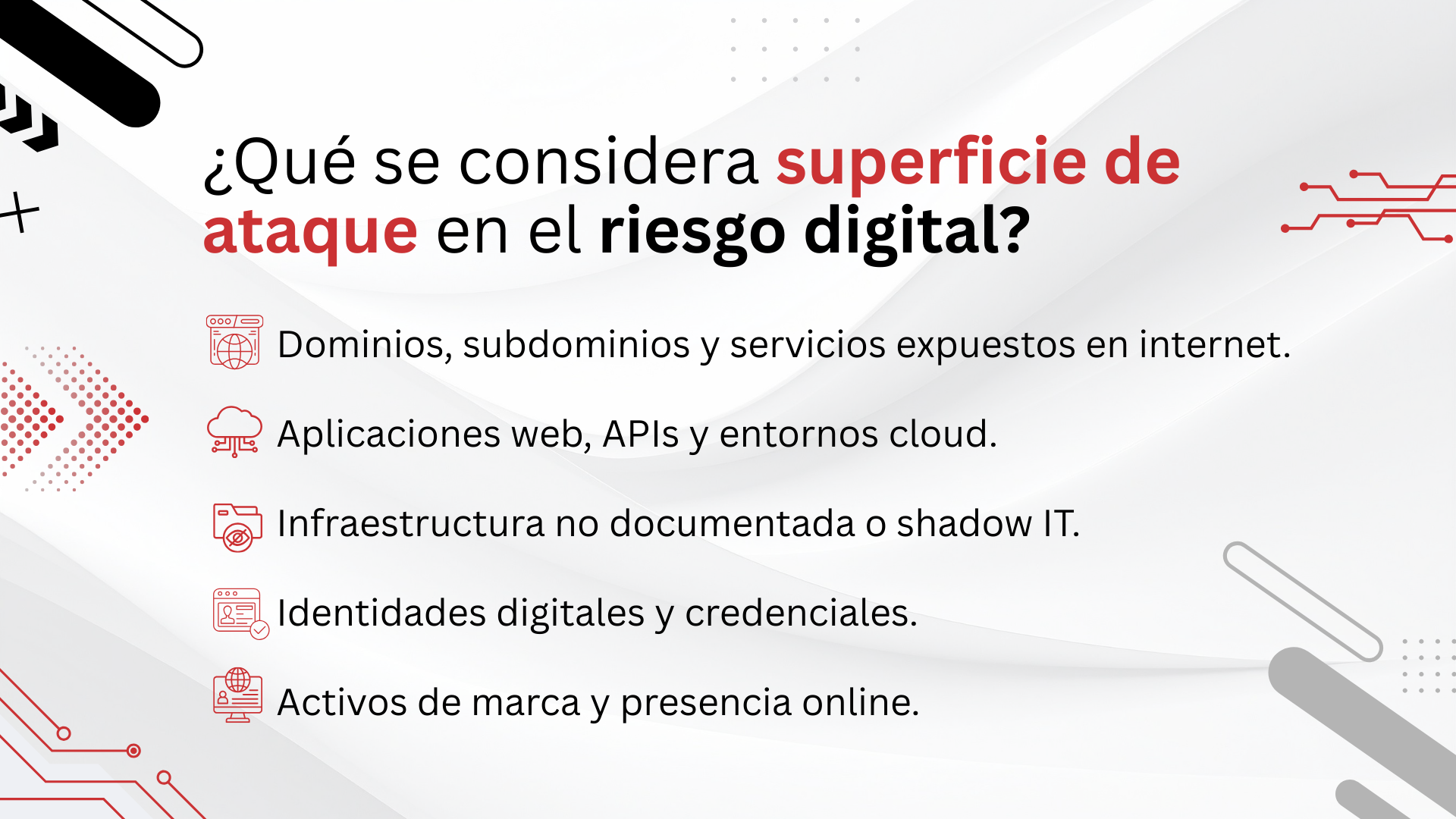 La Gestión del Riesgo Digital es un enfoque de seguridad orientado a identificar amenazas externas asociadas a la exposición digital real de una organización. A diferencia de los modelos tradicionales, centrados en proteger infraestructura interna, este enfoque amplía la visibilidad hacia activos, identidades y referencias que existen fuera del perímetro corporativo.
